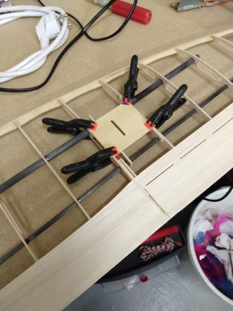Na het aanbrengen de kabels verlengt en de servo afdekking aan de bovenzijde van de vleugel.