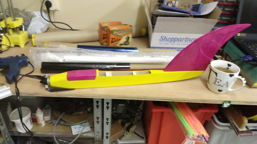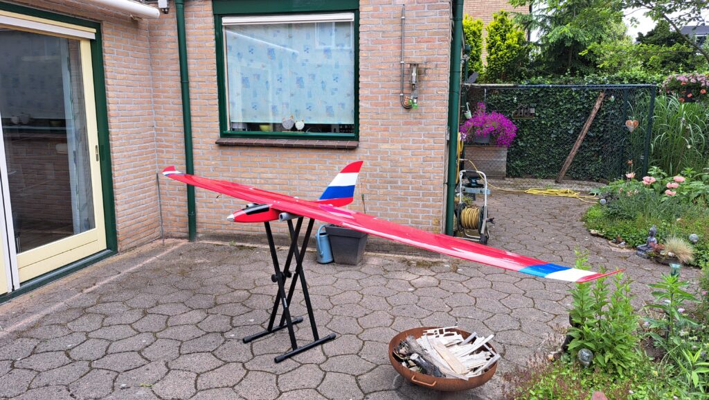 Op de foto is goed te zien dat de roeren nog niet zijn losgesneden. Na de inbouw van de servo’s hebben we de plaats van de roerhoorntjes bepaald zodat deze goed uitgelijnd zijn t.o.v. de servo. De uitslagen zijn max 8 mm up/down. Belangrijkste was om dit mechanisch goed in te stellen. Met de moderne zenders grijpen we veel te snel terug op de mogelijkheid om het nulpunt van de servo te wijzigen en daarmee alles goed op “0”te stellen. Eerst mechanisch instellen en pas tijdens de vlucht evt. trimmen.