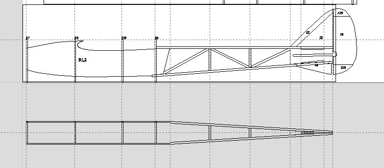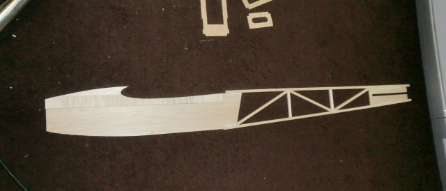 Als beide zijkanten klaar zijn dan breng je nog een versterking aan op R6 door hierop een dwarsligger te lijmen van 5mm balsa.